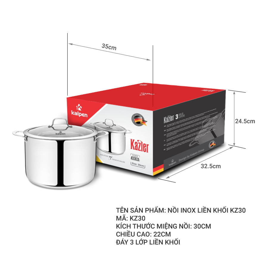 Nồi inox 3 lớp liền khối Kalpen Kazler KZ30